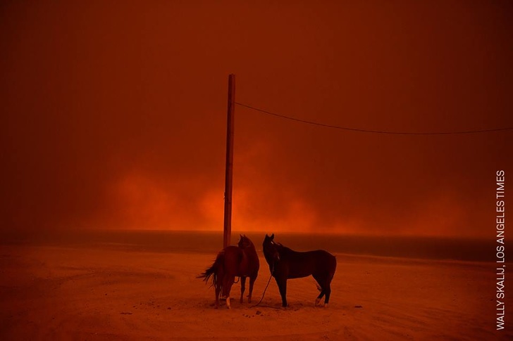 Евакуйовані коні після руйнівної пожежі в історії Каліфорнії, який стався в 2018 році. Вогонь знищив понад 676 тис. га.