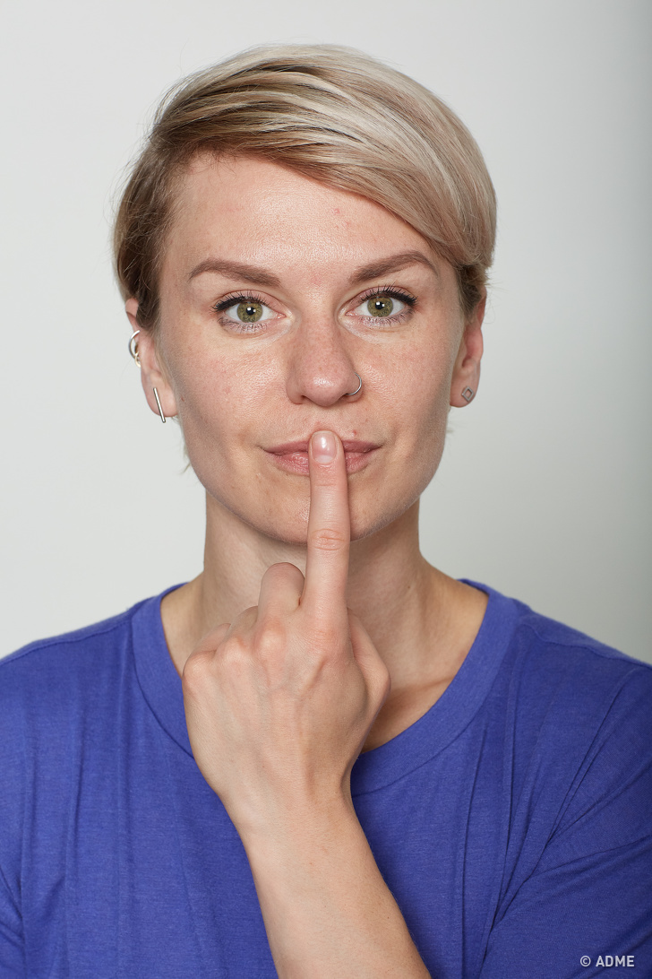 Це вправа при регулярному виконанні робить губи повніше і розгладжує зморшки над верхньою губою.
