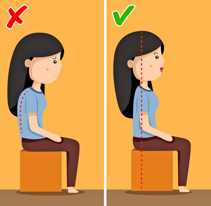 - Поза. Всі вправи рекомендується виконувати саме в цій позі. Перед виконанням вправ сядьте прямо, максимально втягніть живіт, наче намагаєтеся притиснути пупок до хребта. Напружте м'язи верхньої частини ніг і сідниць. Така поза дозволить зосередитися на окремих особових м'язах, над якими ви будете працювати.