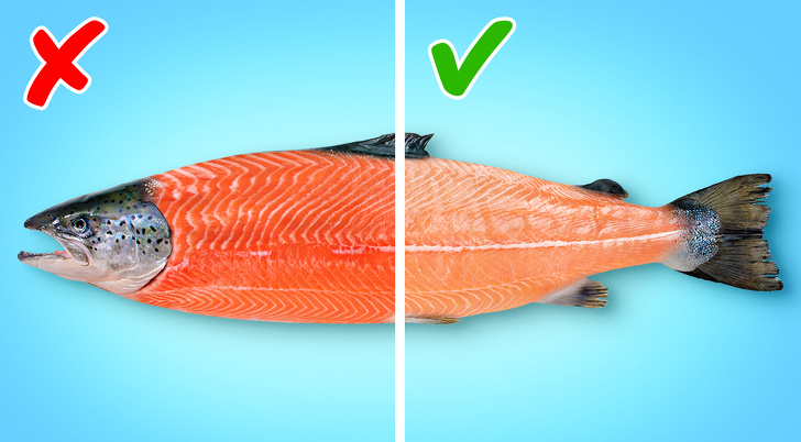 Якщо дикі види лосося — нерка, кижуч, кета — дійсно відрізняються інтенсивністю забарвлення, то більш дорога і жирна (а значить, і багата омега-3) сьомга помітно блідіше. Трохи яскравіше буде форель, але і вона програє кете або горбуші. Білі прожилки відносяться до плюсів: вони доводять, що рибу не додавали барвник.