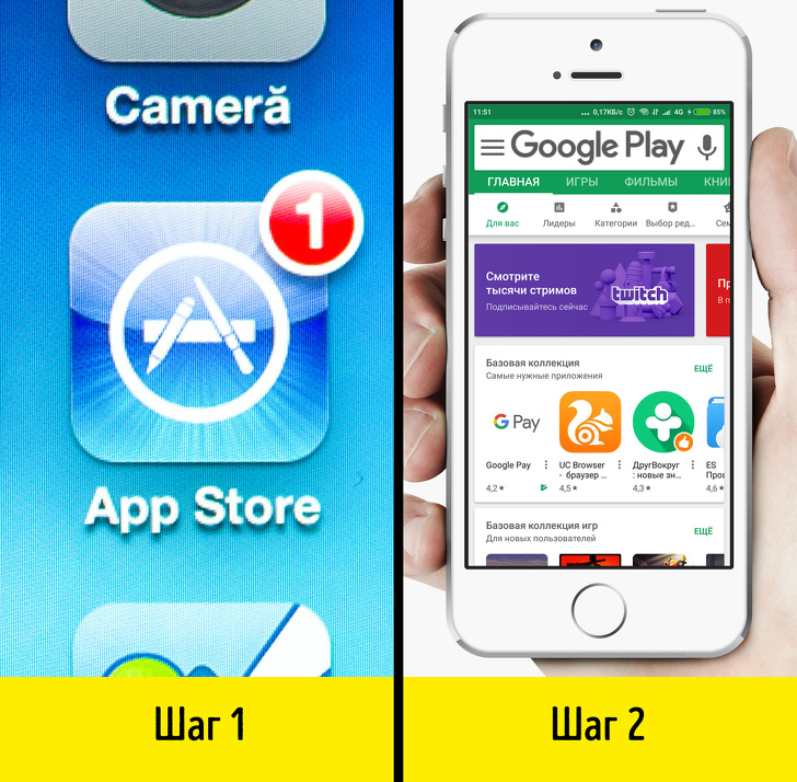 4. На iPhone перевірте, як відкривається App Store. У смартфонів — підробок під Apple замість операційної системи iOS використовуються теми в стилі iPhone, встановлені на Android і Java, і під значком App Store ховається або Google Play, або імітація фірмового «сховища» додатків на Java.
