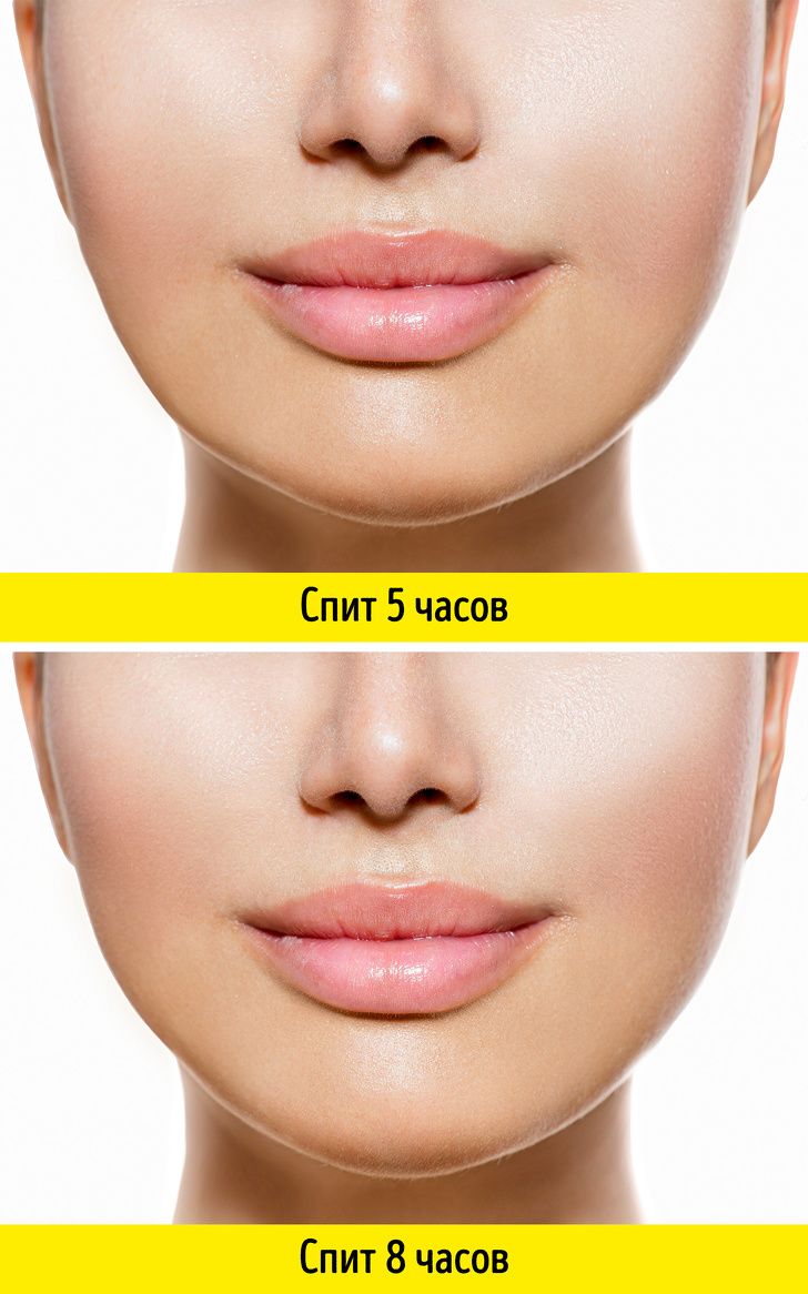 Брак сну може призвести до того, що риси обличчя попливуть вниз, а зморшки стануть більш вираженими. До того ж вночі відбувається відновлення шкіри, а інгредієнти кремів діють ефективніше, адже уві сні поліпшується циркуляція крові. Однак під час відпочинку організм втрачає дуже багато вологи. Щоб не допустити зневоднення шкіри, необхідно користуватися зволожуючими засобами.