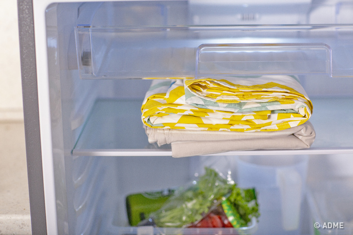 - Ще один відмінний спосіб охолодитися — покласти вранці простирадло і наволочку в холодильник, а перед сном застелити ними постіль. Але не кладіть білизна в морозилку: так є ризик захворіти.