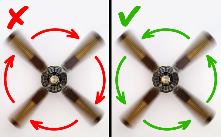 Вони дешеві, кріпляться на люстру і добре охолоджують приміщення. Якщо у вас такий вентилятор, перевірте, щоб його перемикач стояв у положенні «літо». У багатьох вентиляторів є 2 режиму для різних сезонів.