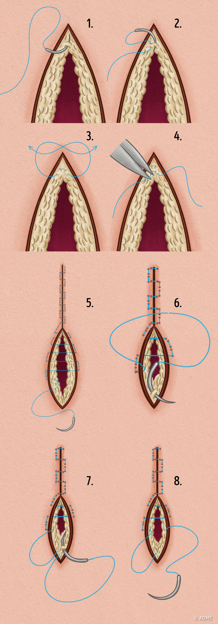 Якщо ви поранилися, то в стандартній аптечці є спеціальна нитка і вигнута голка, щоб зашити рану. Але далеко не всі вміють правильно це робити. Видів стібків для різних ран багато, але, щоб надати швидку допомогу, достатньо знати хоча б один.