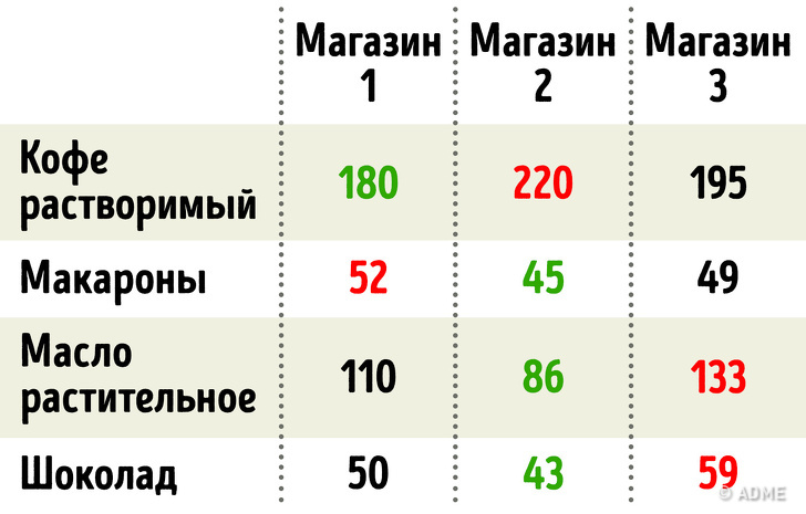 Слідкуйте за цінами на продукти, які ви купуєте найчастіше. Перевіряйте їх вартість одразу в декількох мережевих супермаркетах. Звучить складно, але це того варто. Відмовтеся від звички переплачувати за бренд. Іноді ціна на один і той же продукт різних торгових марок може відрізнятися на 30-50 %. Більш дорогий, брендовий товар розташований на полицях, які знаходяться на рівні ваших очей. Просто опустіть погляд нижче, і ви побачите саме те, за чим прийшли.