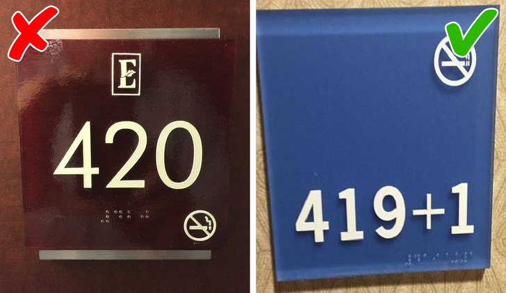 На північноамериканському континенті любителі дурманних речовин використовують число 420 як код для своїх вечірок. Цей сленг поширився по всьому світу, і не дивно, що власники готелів прагнуть уникати всякого натяку на ці дії. Деякі навіть міняють таблички на дверях кімнат під номером 420. Іноді можна зустріти досить незвичайні приклади.