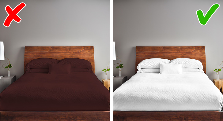 Білосніжна ліжко в центрі кімнати викликає у нас відчуття ретельно проведеної збирання, навіть якщо покоївка лише поміняла постільна білизна. Це пов'язано з психологічним сприйняттям кольору — він асоціюється з чистотою. Ще один бонус від білого текстилю — його не потрібно сортувати при пранні, з цієї ж причини халати і рушники в готелях теж білі.