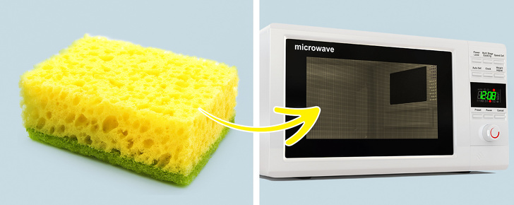 Щоб швидко прибрати жирний наліт з кухонних меблів, досить пройтися по її поверхні губкою, попередньо нагрітої в мікрохвильовці. Всього 30 секунд — і губка стане досить гарячою для того, щоб ви змогли легко зняти жирову плівку. А якщо губку просочити ефірною олією апельсина або лимона, то і пахнути на кухні після такого прибирання буде приємно.