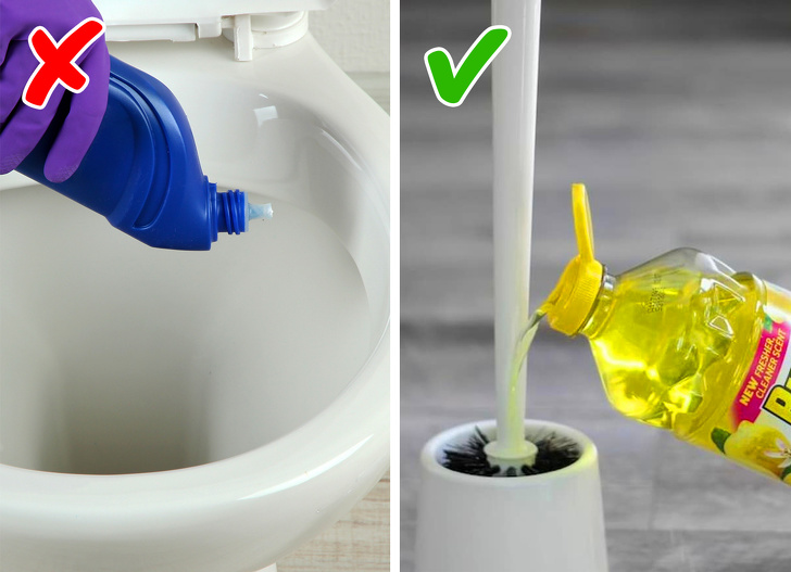 Візьміть універсальний засіб для чищення сантехніки і додайте його в підставку для йоржика. Таким чином, при кожному використанні ви заодно будете робити міні-прибирання і дезінфекцію унітазу. До того ж цей спосіб допомагає боротися з неприємним запахом. А змінювати засіб в ємності потрібно не рідше ніж раз на тиждень.