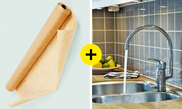 Вощений папір для випічки запобіжить поява вапняних плям на поверхні кранів. Просто протріть вощеным листом поверхню крана. Віск, яким просякнута папір, стане бар'єром для води, і про частому митті кранів можна буде забути надовго.
