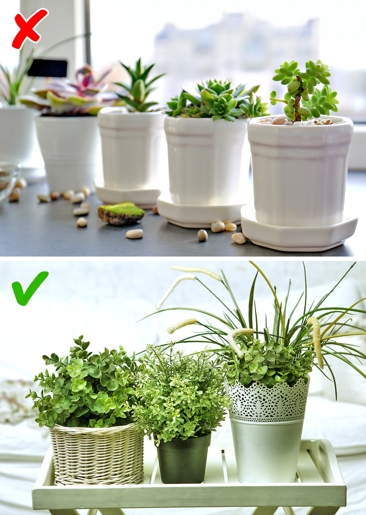 Відмінний порада для тих, хто захоплюється домашньою квітникарством: використовуйте загальний піддон для всіх кольорів, що стоять у вас на підвіконні. Він допоможе уникнути утворення плям під квітковими горщиками, а якщо при поливі деяку кількість води все ж витече, то воно залишиться на великому піддоні і не потрапить на підвіконня.