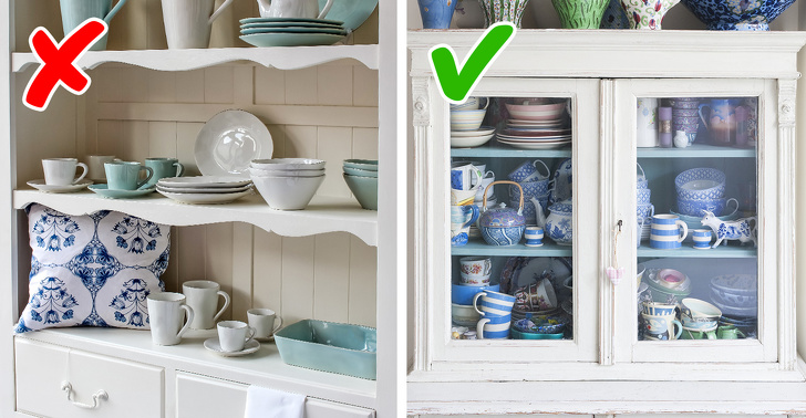 Книги, статуетки, сувеніри і т. д. — чим більше дрібних предметів у вашому будинку, тим частіше доводиться видаляти з них пил. Фахівці з прибирання пропонують зберігати подібні речі в заскленій шафі — і красиво, і роботи менше. Все, що здатне притягувати пил, повинно бути заховане, тоді і прибирати доведеться рідше.