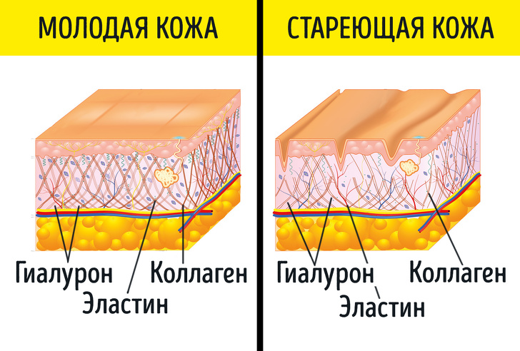 Візьміть упаковку будь-якого крему проти зморшок. Напевно ви знайдете в складі вітаміни, антиоксиданти, ненасичені жирні кислоти, та з ймовірністю 99 % — колаген і гіалуронову кислоту. Ці добавки можна купити в аптеці: окремо вони коштують дешевше, ніж крем від зморшок. Ось інформація про те, що саме потрібно шкірі, щоб залишатися пружною і підтягнутою.