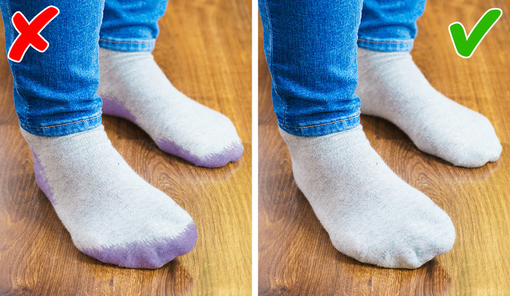 Буває, що нова взуття линяє з вивороту і бруднить шкарпетки, панчохи, навіть прикрашає ноги. Запобігти таку неприємність допоможе тальк. Ввітріть його, не шкодуючи, у внутрішню поверхню нових черевиків. Залишки зберіть чистою ганчіркою. Тальк можна замінити дитячою присипкою або крохмалем.