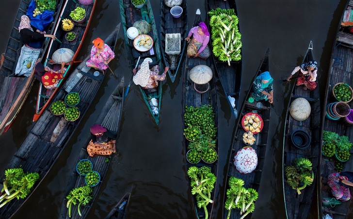 17. Барвистий плавучий ринок в Індонезії відкривається рано-вранці, до сходу сонця