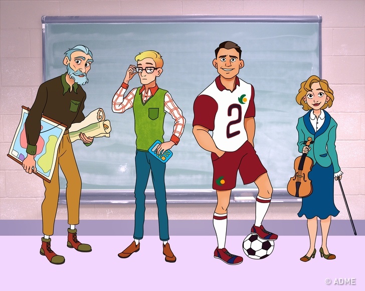 які перебували поблизу. Коли слідчий почав допитувати всіх, йому стало очевидно, хто винен. Під підозру потрапили четверо: вчитель історії містер Гренджой — сказав, що в той момент готував карти для уроку; математик містер Ворт — проводив тест; вчитель фізкультури містер Роджерс — грав у футбол зі студентами; вчителька музики місіс Невилс — проводила факультатив по грі на скрипці.