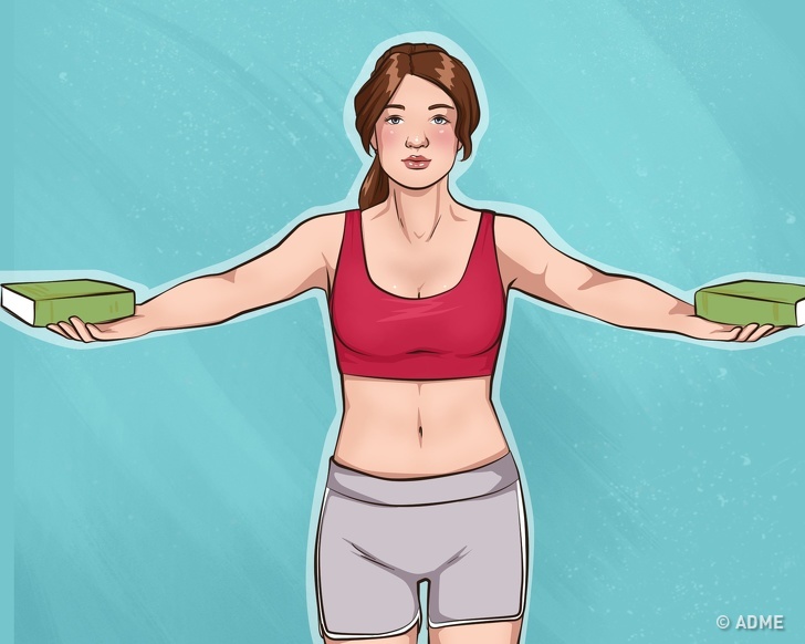 - Візьміть у руки по товстій книзі / гантелі.