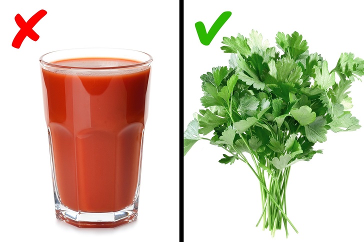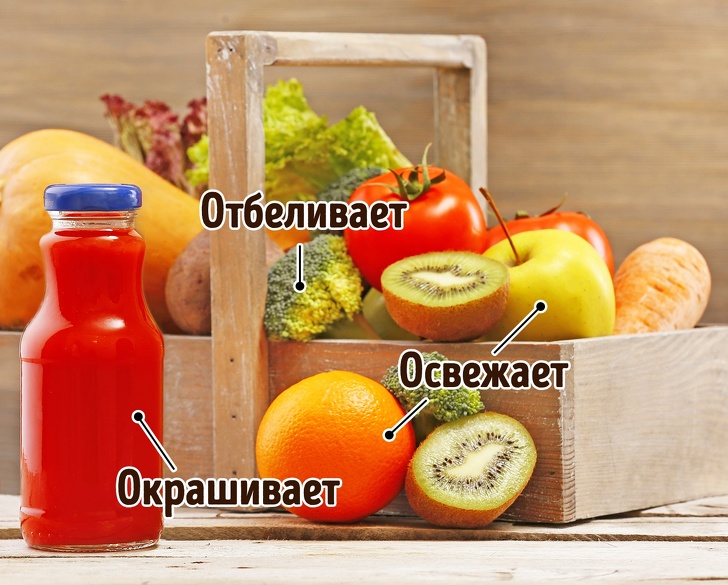 - Соки. Яскраві фруктові та овочеві соки діють так сильно, тому що містять кислоту, яка послаблює зуби і дозволяє легше проникати барвним речовинам. Якщо ми їмо ягоди або овочі, слина виділяється сильніше і змиває фарбувальні речовини, у випадку з соками так не відбувається.