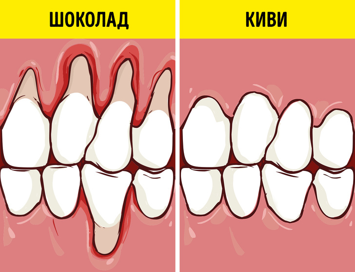 - Ківі. Цей фрукт містить максимальну кількість вітаміну С, при відсутності якого в організмі знижується вироблення колагену і ясна починають кровоточити.