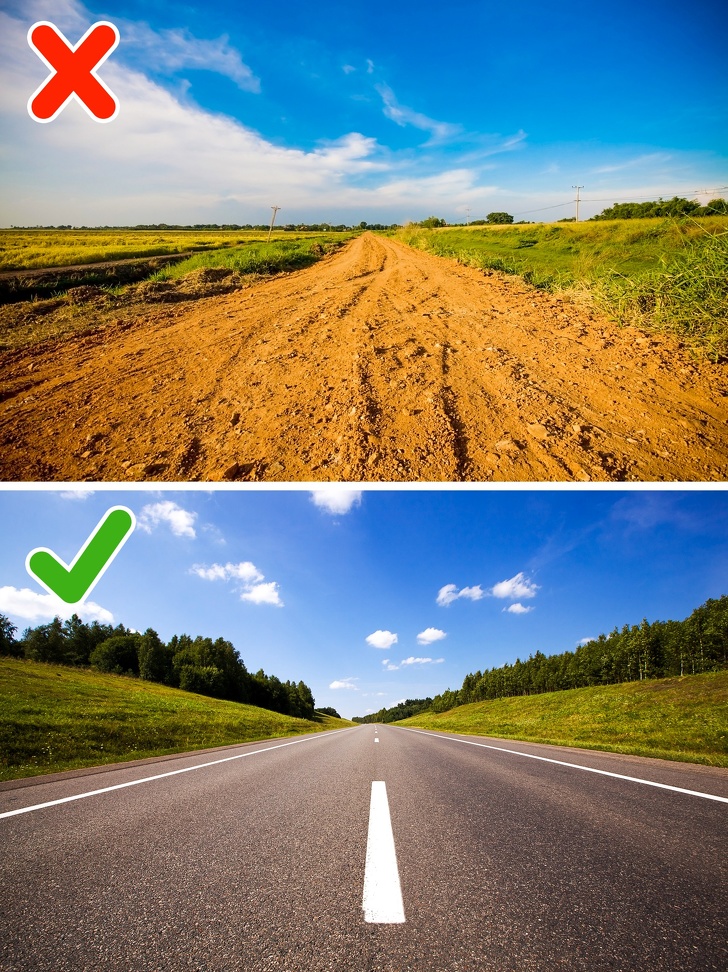 Звичайно, альтернатива є не завжди. Однак, якщо стоїть вибір між польовою дорогою, яка трохи коротше, і асфальтованої — варто вибрати другий варіант. Економія палива в першому випадку, на жаль, досить ілюзорна: вибоїста, нерівна, неасфальтированная дорога здатна збільшити витрату бензину на 30 %, адже навантаження на машину істотно зростає.