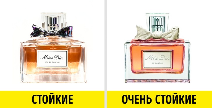 Стійкість також залежить і від нот, які містяться в композиції. Аромати зазвичай включають 3 складові.