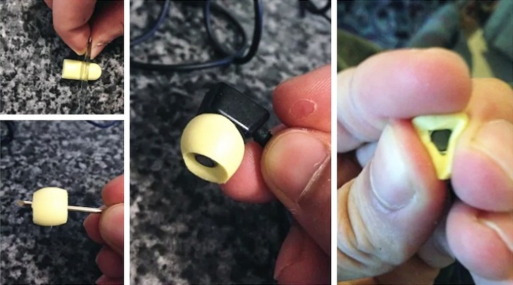 Якщо навушники погано звучать, надіньте на них частину від вкладок, як показано на фото. Звук стане значно краще.