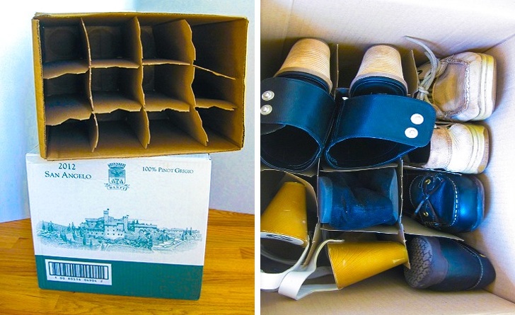 Пакети з взуттям займуть багато місця. Набагато зручніше буде перевозити її в коробках з-під вина. Такі коробки можна попросити в будь-якому магазині, де продають алкоголь.