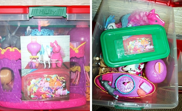 Діти напевно захочуть розібрати свої коробки самі. Коробки з фотографіями допоможуть їм швидше знайти улюблені іграшки. Щоб пошук був ще простіше, складайте іграшки в прозорі контейнери.