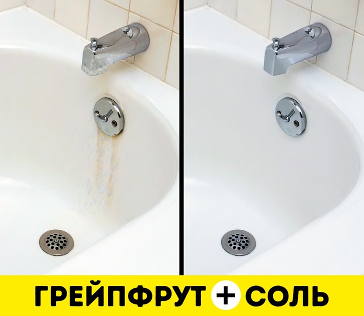 Це несподіване поєднання допоможе позбутися від вапняного нальоту у ванній кімнаті. Розріжте грейпфрут навпіл, насипте на половинку сіль і почистіть цієї вийшла губкою ванну або фаянсову раковину.