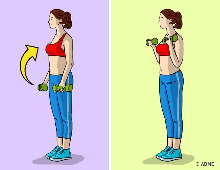 Підтягти м'язи допоможуть згинання рук з гантелями. Виберіть комфортний вага, притисніть руки до тіла і повільно піднімайте їх до плечей.