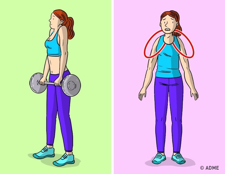 Цей вид вправ не є найефективнішим для прокачування рук, зате здорово збільшує трапецію.