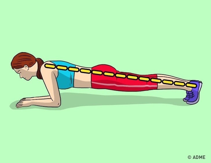Альтернативою для плоского живота може стати планка. Це нескладна вправа, яку можна робити в залі або будинку. Витягніться уздовж підлоги на ліктях і замріть на хвилину.