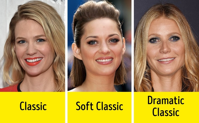 Особа: гармонійне і пропорційне, риси плавні, середніх розмірів; підтипу Soft Classic властиві пухкі губи і щоки; Dramatic Classic відрізняються кутастим носом, підборіддям, вилицями.