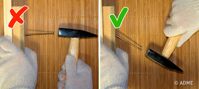4. Цвях буде триматися міцніше, якщо його забивати під кутом до напрямку волокон дерева