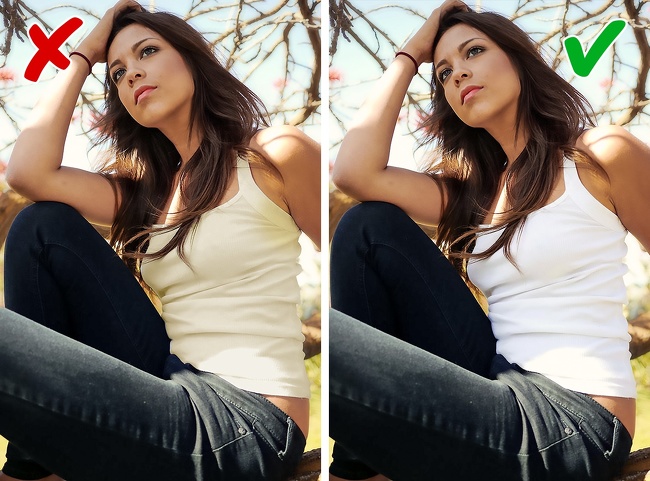 Білий колір одягу, як і чорний, здатний на багато що в хорошому сенсі, але тільки якщо він ідеально білий. А от жовтий або сірий відтінок колись білої речі роблять людину таким же невиразним, як польова миша. Особливо шкода виглядають плями від поту на білих речах.