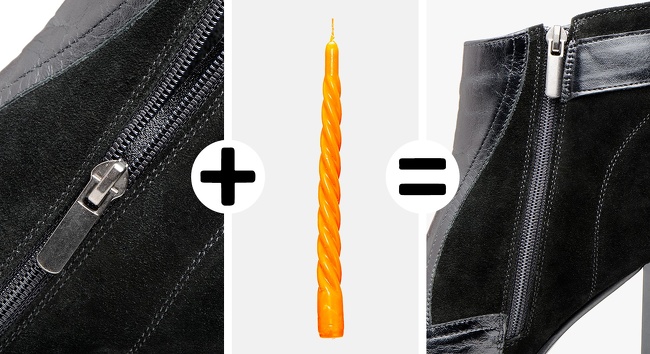 Якщо у вас на взуття застрягла блискавка, але є воскова свічка, цей спосіб для вас: протріть нею «зубчики», і замок піде як по маслу.