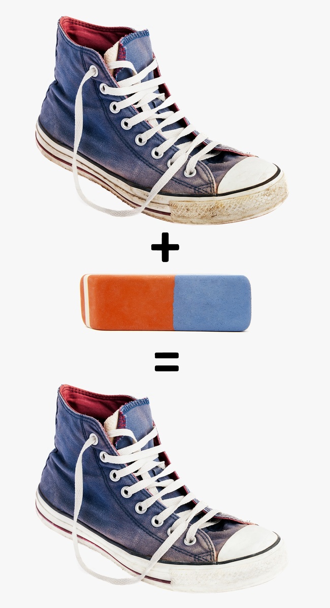 А якщо вам хочеться домогтися первозданної чистоти від підошви своїх кедів, візьміть звичайний ластик і «зітріть» весь бруд. Подивіться тут, як це працює.