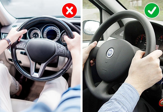 Чи не перше, чому вчать в автошколах, — це правило «10 і 2», що позначає положення рук на кермі. Вважається, що це допоможе краще керувати автомобілем, якщо потрібно уникнути несподівану перешкоду. Однак це помилка. Експерти рекомендують позицію рук «9 і 3», щоб комфортно здійснювати повороти навіть на високих швидкостях. Крім того, так кисті знаходяться далі від подушки безпеки, що дозволяє уникнути травм.