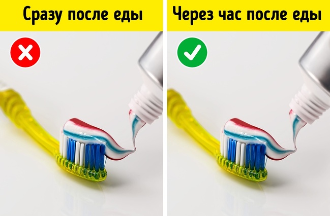 Чистити зуби, безумовно, потрібно. Але важливо робити це не відразу, а лише через 30-60 хвилин після їжі. Емаль зубів — найбільш тверда частина людського організму, але і вона стає м'якше в кислотному середовищі, наприклад після того як ви з'їли фрукт або молочні продукти. Якщо почистити зуби в цей момент, можна пошкодити емаль. Після їжі стоматологи рекомендують обполіскувати рот звичайною водою або пожувати жуйку, яка прискорить вироблення слини і відновлення нормального pH-балансу.
