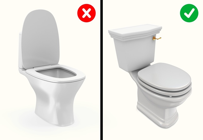 Всі знають, що потрібно відразу ж змивати за собою, але важливо робити це правильно. Справа в тому, що якщо змивати при піднятій кришці унітазу, то найдрібніші частинки води разом з бактеріями розприскуються на висоту до 2 метрів. Сущий кошмар гігієніста. Тому ніколи не забувайте опустити кришку.