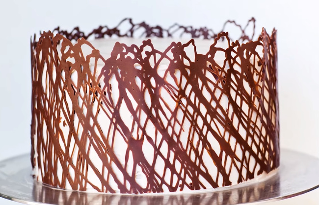 Ви можете прикрасити торт витонченим ажуром, причому особливі інструменти для цього не потрібні. Достатньо звичайної харчової папери і кульочка для нанесення розтопленого шоколаду.