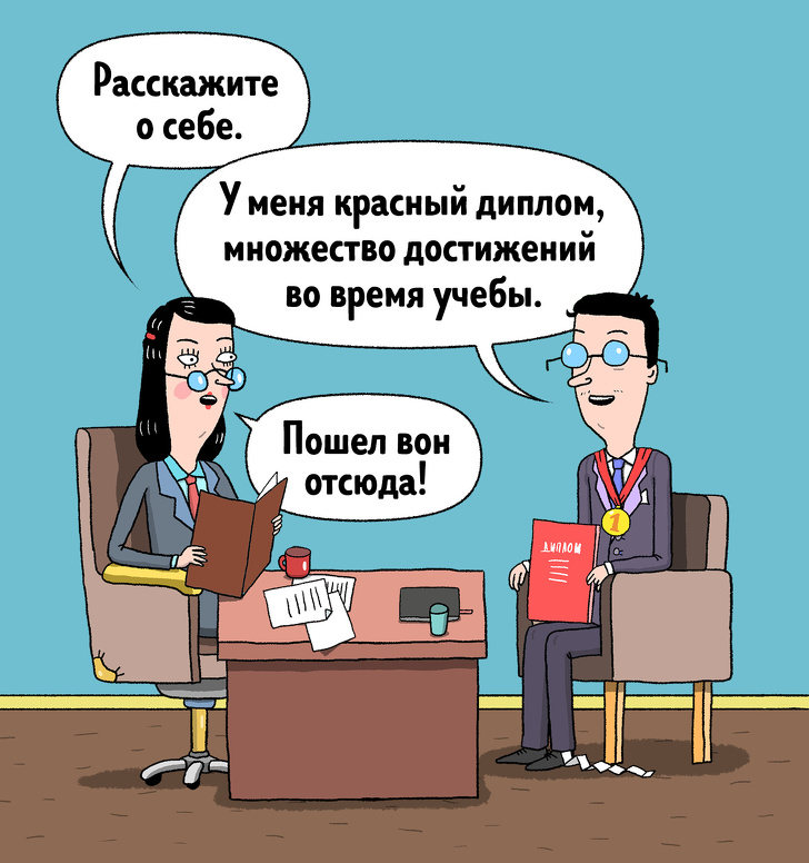 Кожен, хто коли-небудь шукав роботу, знає, що співбесіда — це єдина можливість справити враження на роботодавця. Здавалося б, треба трохи поспілкуватися — і ви отримаєте бажану вакансію. Але скільки труднощів деколи стоїть на шляху до неї: то ваш червоний диплом «недостатньо червоний», то зарплату на випробувальному терміні пропонують таку, що вам буде вистачати грошей тільки на проїзд і макарони.
