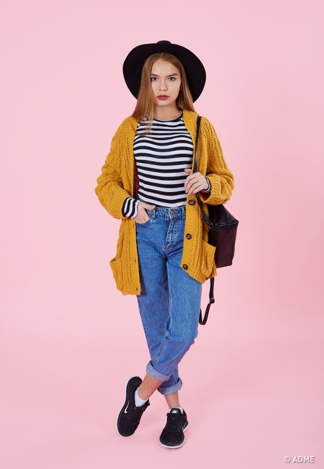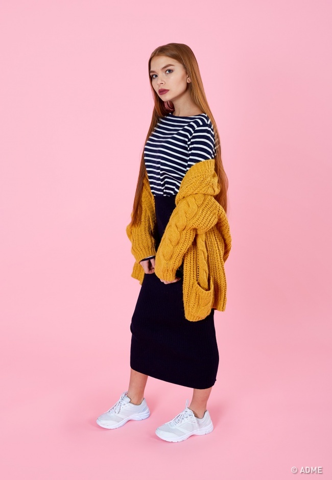 В'язаний широкий светр, вільна довга спідниця і, звичайно ж, зручні кросівки. Цей образ можна назвати одним словом: комфорт. Ідеально для вечірніх посиденьок з друзями.