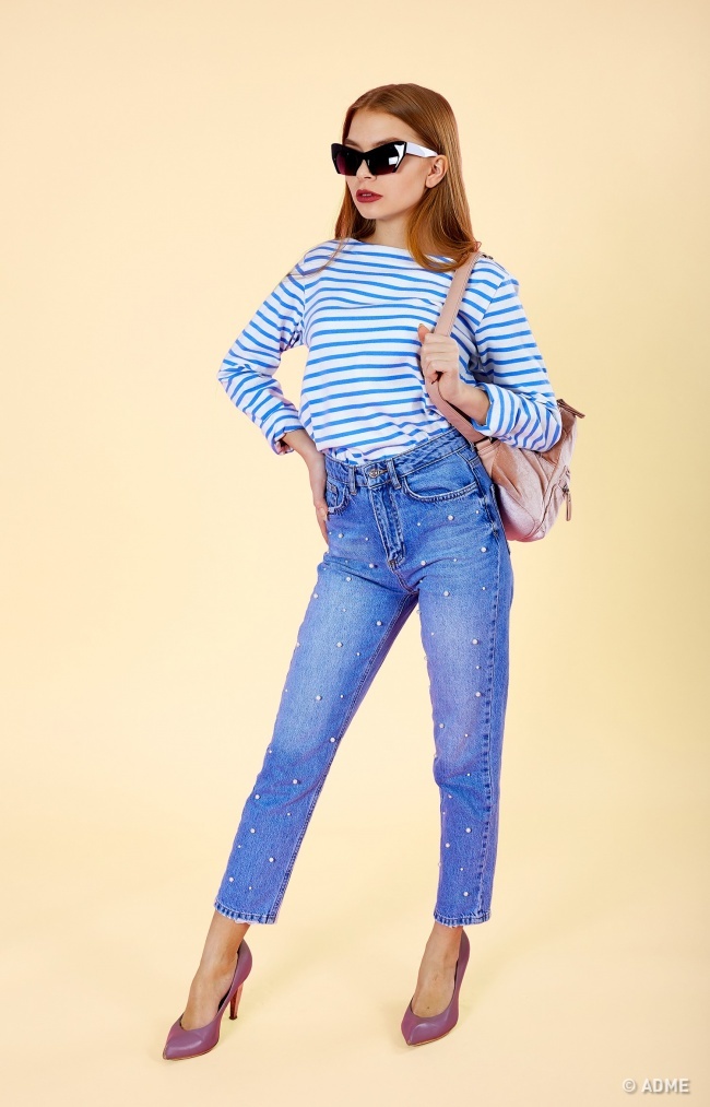 Найбільше шансів підкорити серця оточуючих у простого поєднання «тільняшка + джинси». Причому джинси можна використовувати будь-які, навіть шорти. Вибирайте варіант на свій смак і поєднуйте їх з мішкуватих рюкзаком або сумкою.
