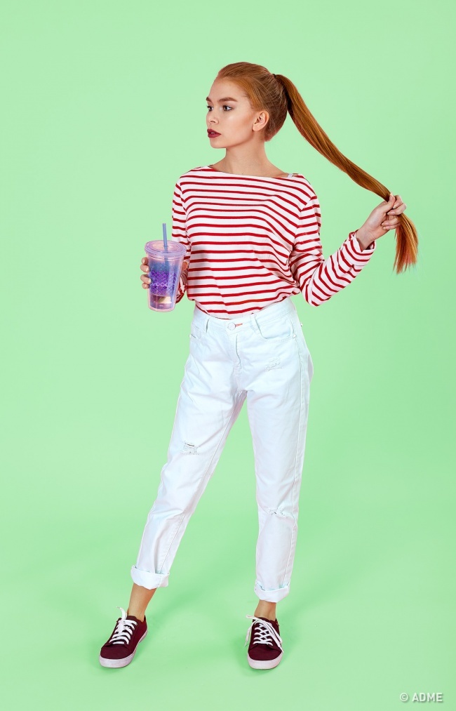 Бавовняні штани капрі або світлі легкі джинси разом з тільником і кедами відмінно підійдуть для спекотних літніх тусовок. Головне — пам'ятати, що кеди повинні бути того ж кольору, що і смужок на сорочці.