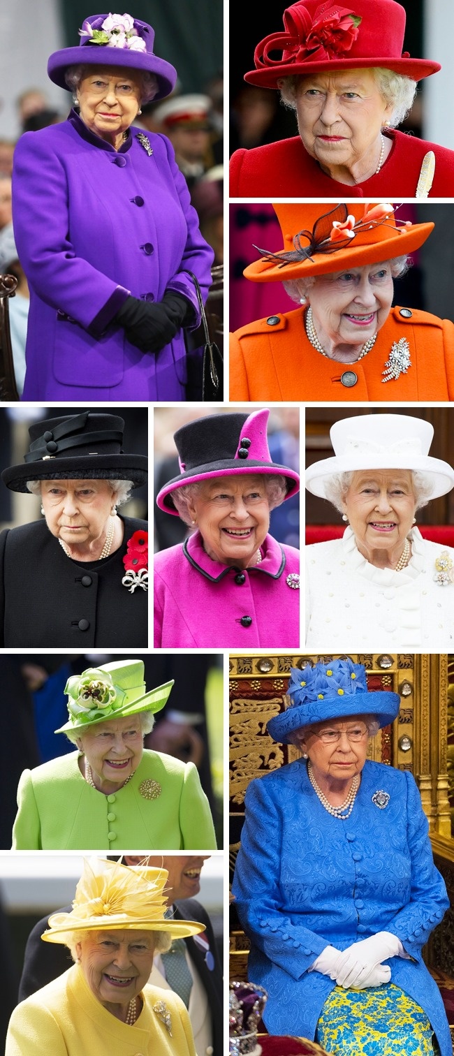 Королева Великобританії Єлизавета II любить всі кольори в однаковій мірі і намагається носити кожен з них. Є також припущення, що колір одягу змінюється, коли змінюється настрій королеви.