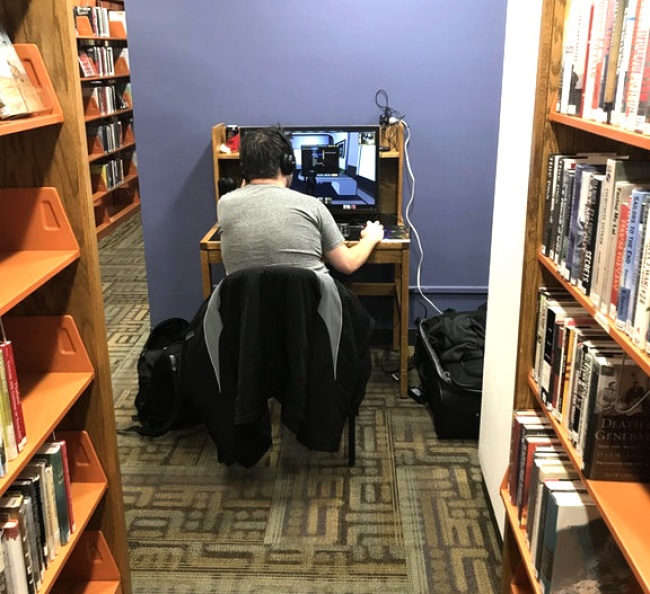 Цей хлопець у двох сумках притягнув в міську бібліотеку свій комп'ютер. Напевно, вдома не дозволяють грати