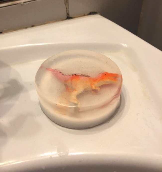В цьому милі є іграшковий динозавр, тому діти будуть раді мити руки, щоб скоріше отримати іграшку