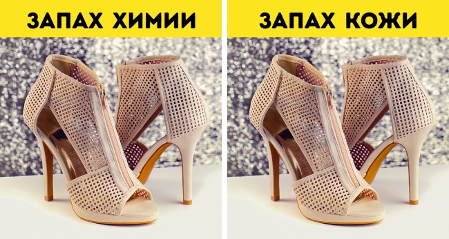 Всі, хто хоч раз купував взуття з замінника шкіри, знають, у чому полягає ця відмінність: нова взуття має різкий хімічний запах, який вивітрюється досить довгий час.